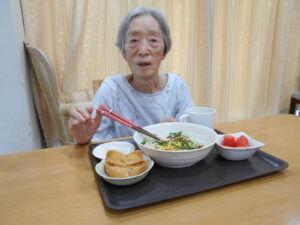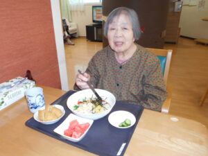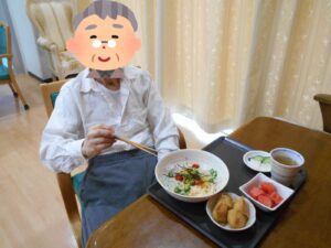 皆さん、こんにちは 今回の昼食レクリエーションは七夕にちなんだ定食にしました