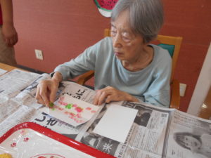 少し前ですが、ゲスト様がそれぞれのご家族様に手つくりの暑中見舞いのはがきを作成しました?