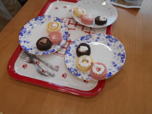 5月14日母の日にゲスト様にロールケーキに生クリームでデコレーションして頂きました。