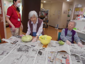まずは、キャベツを切って頂いたり、