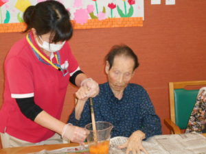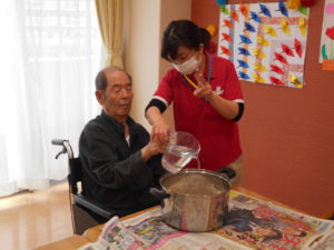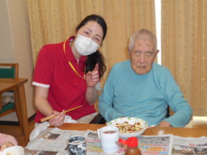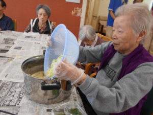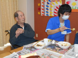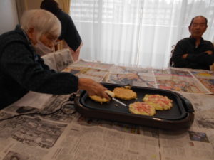 この日は、昼食レクリエーションで、ゲスト様と一緒にお好み焼きを作りました‼