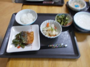 鯖の竜田揚げ、のっぺ もみうり 飛鳥汁?