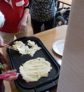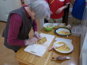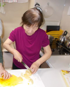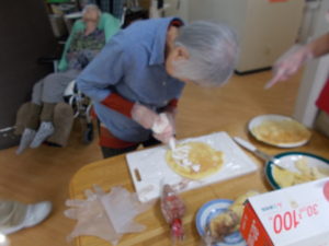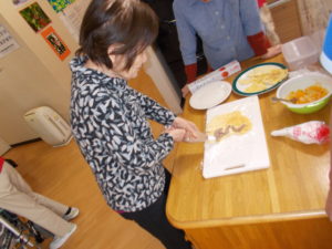 生地を作るところから始め、フルーツを切ってもらったり・・・
