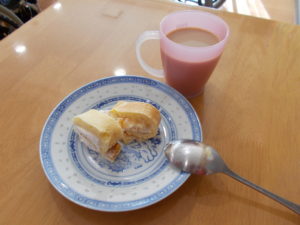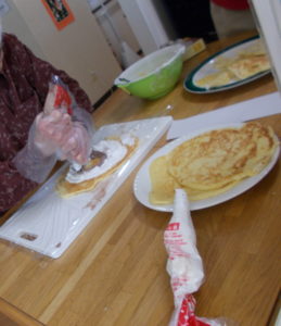 クレープ状の生地にクリームをお好きなように、お好きなだけのせて頂きました。