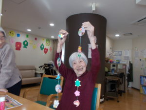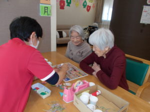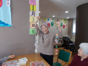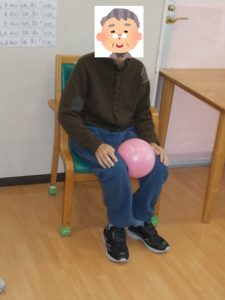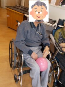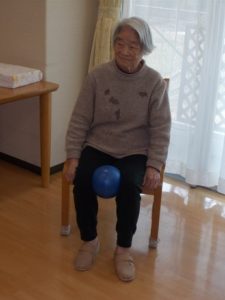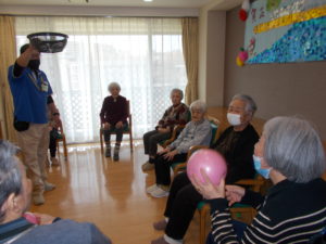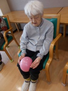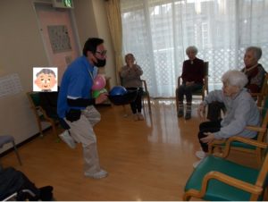 お正月の間、デイサービスのスタッフがボールを使ったレクリエーションや