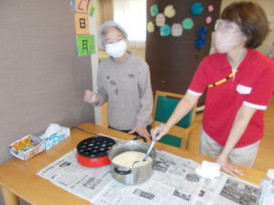 ゲスト様、スタッフ皆さんが一緒にたこ焼きを焼いて・・・