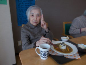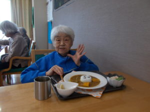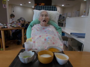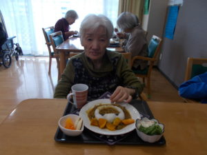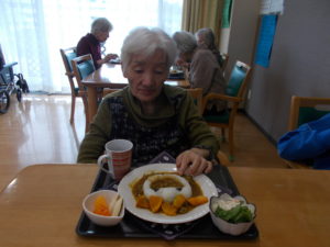 グループホームでも、昼食レクリエーションで、ハロウィンにちなんだ