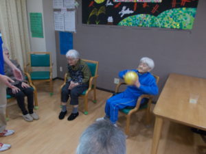 スタッフが円の中心に入って、ゲスト様がボールを当てるというルールです。