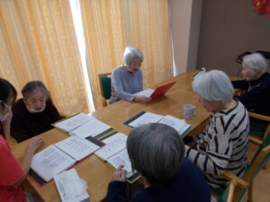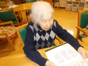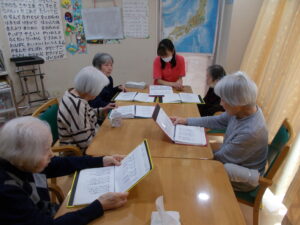 この日は、童謡の歌詞を見ながら、ゲスト様と一緒に歌を唄いました
