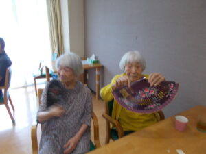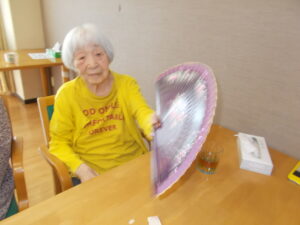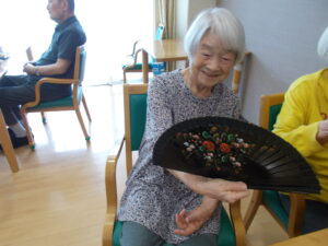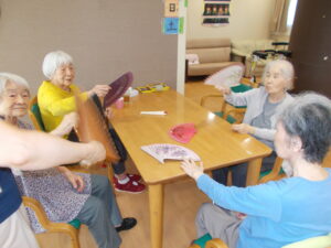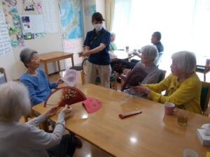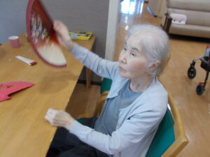 この日はゲスト様皆さんで、扇子を使った運動レクリエーションをしました
