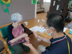 この日は、歌に合わせて、手遊びレクリエーションを行いました