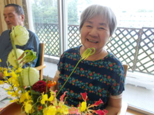 本日の花材 長野県産『風船唐綿』台湾産『オンシジューム ハニーエンジェル』