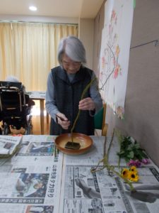 毎月1回の生花の日で今回のお花は、岐阜県産『石化柳』