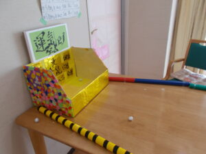 この日は、スタッフが段ボール工作して作ったその名も・・