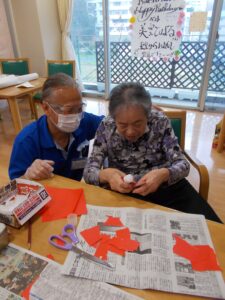 の鯉のぼりの制作をゲスト様と一緒にしています