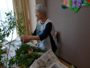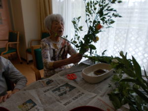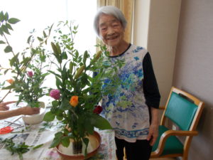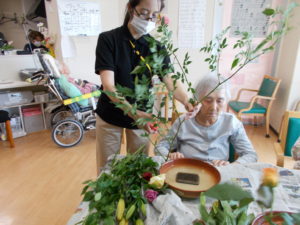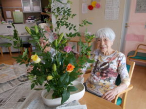皆さん、こんにちは☺ この日は、月に1回の生花レクリエーションの日で