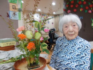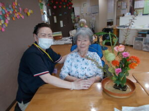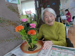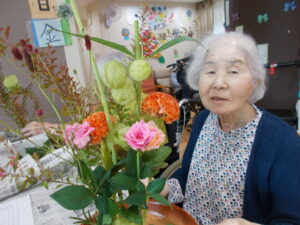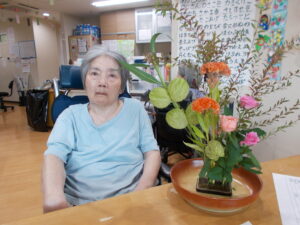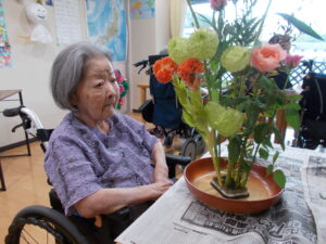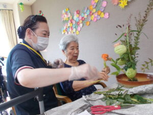 この日は、生花レクリエーションでゲスト様皆さん一生懸命