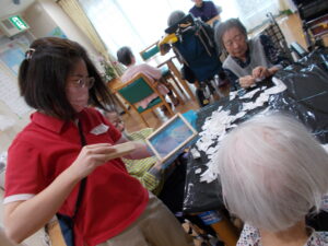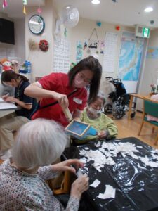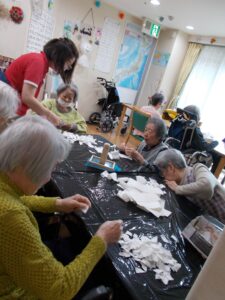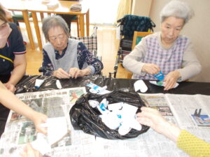 この日は、工作レクリエーションで和紙作りの為の準備で