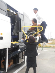 見た目は観光バスなのですが、じつはリフトがついており車椅子の方でも対応できる優れものでした。