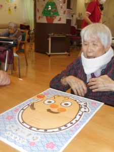 『書き初め』に引き続き、『ふくわらい』をゲスト様と一緒にしました?