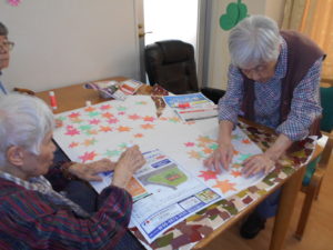 ゲスト様は、紅葉の葉っぱをのりで一生懸命貼ってくれました?