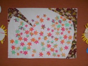 この日は、10月の季節をテーマにした壁紙を、ゲスト様と一緒に工作をしました?