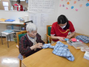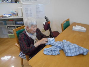 今日は、ゲスト様にほつれたパジャマをお裁縫で直して頂きました?