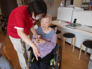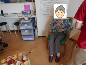 得点の書いた牛乳パックにペットボトルのキャップを使用してキャップ飛ばしレクを行いました。