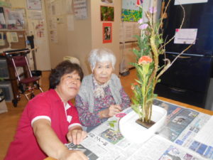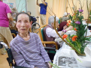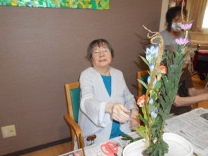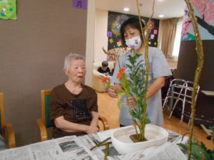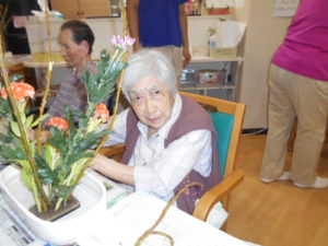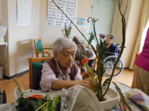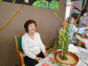 今日は生花の先生を招いて、生花レクリエーションを行いました?