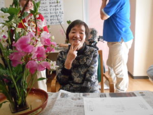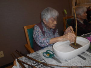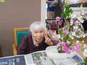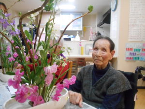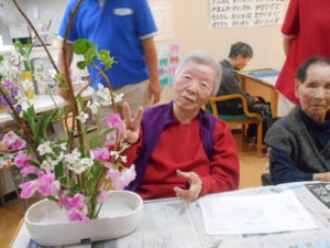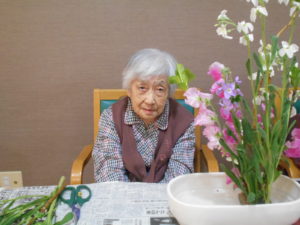 この日は、ボランティアの生け花の先生を迎えての生け花ですレクリエーションです?