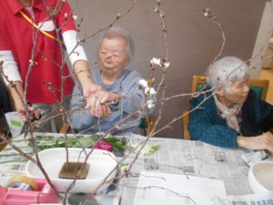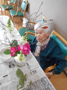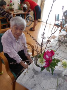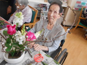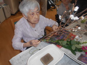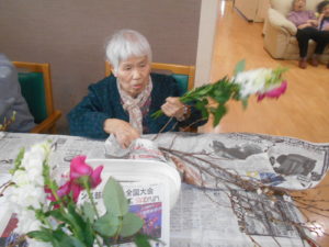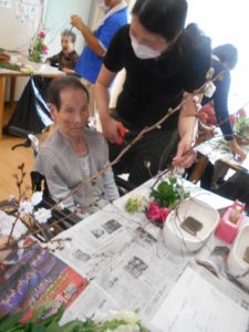 この日は、ボランティアの生け花の先生をお招きして生け花のレクリエーション