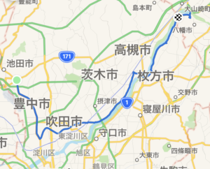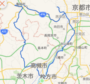 嵐山→9号線→亀岡→茨木市→枚方と帰ってきました。