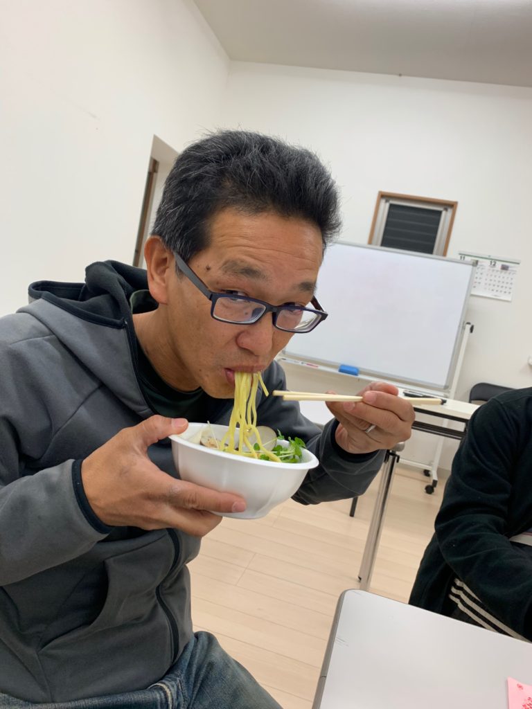 今回のラーメン研究会は自分達で実際ラーメンを作ってみて、今後当施設のお祭りの時に出店を目指そうという主旨で行いました。 実際ラーメン店で働いていた職員の協力のもとで2種類のラーメン(塩・醤油)を作りました。