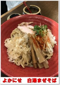 混ぜそばは、普通のラーメンに比べると若干あっさりめ