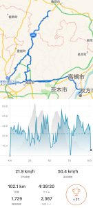 枚方→箕面集合→箕面の滝方面→432号経由にて亀岡市街地を往復