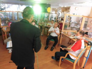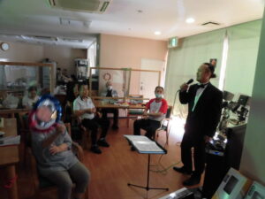 どうでしょう!!この風格。どう見てもプロですね。ゲスト様もノリノリです 職員もノリノリです。演歌から歌謡曲、昔懐かしい歌まで披露しました。