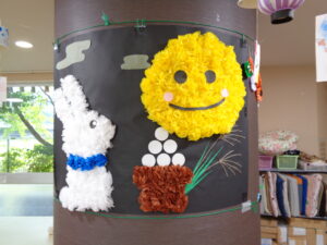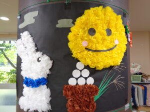 9月に入り気温も下がるとおもいきやとても暑いです残暑が続きます。あおまだにフロアではお月見の壁面制作を実施しましたのでご報告させていただきます。