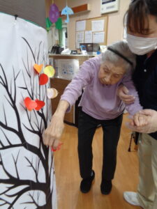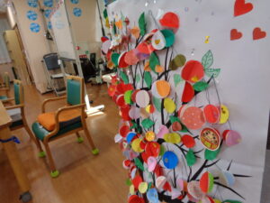 6月に入り気温も上昇し蒸し暑い日もあります。気温の温度差もあり体調管理も難しい今日この頃です。あおまだにフロアではさくらんぼ壁面制作を実施しましたのでご報告させていただきます。