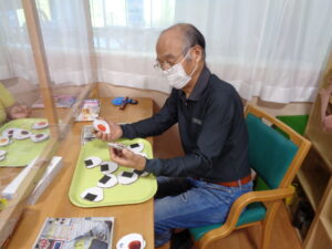 神経衰弱ゲームです。記憶力が問われるゲームですね。組み合わせが当たるととても気持ちいいです。ゲスト様も真剣そのものです。