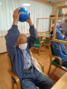 ボール体操・棒体操・フロアー体操・廊下体操含め1日5回も体操を実施しています。プールリハビリも同時に毎日実施しております。これからも毎日続けます。継続は力なりです。
