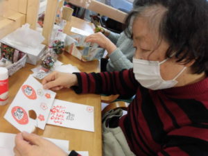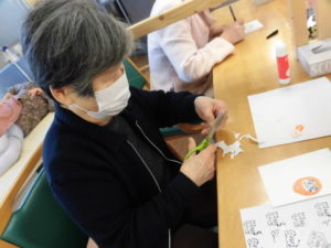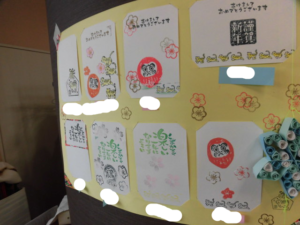 今回はスタンプや、来年の干支のトラをはさみで切ってはりつける作業をお願いしました⭐