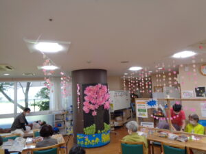 4月に入りようやく過ごしやすい季節となりました。世間では桜🌸が満開です。心も和やかになります。あおまだにフロアも桜🌸が満開です。今回は🌸桜の吊るし飾り🌸🌸🌸🌸をゲスト様と制作しましたのでご報告いたします。