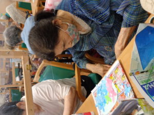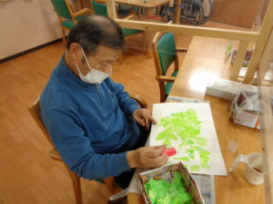 前回使用した半紙に色をつけたものを、画用紙にはりつけていきます?