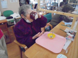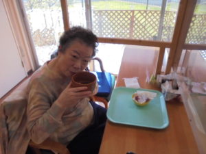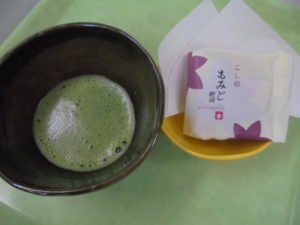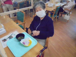 脳トレ後は、屋外ではないですが、野点にみたてて皆様にお茶をたてていただきました?