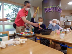 5月に入りとても過ごしやすい季節です。あおまだにのフロアでは様々なレクリエーションでゲスト様に楽しんでいただいています。
