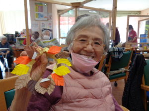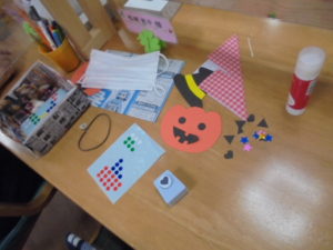 いよいよ11月に入り秋本番です。気温も変動し体調の崩しやすい季節でもあります。あおまだにのフロアーでは10月末に行いましたハロウイン壁面制作、グッズ制作と秋のリース制作のご報告をさせていただきます。