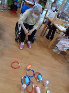④輪投げ大会です。単純ですが結構面白く集中力と技が必要ですね!!