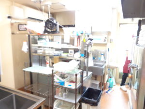 厨房のシステム、職員も変わりました。食事もこの厨房でお料理いたします。
