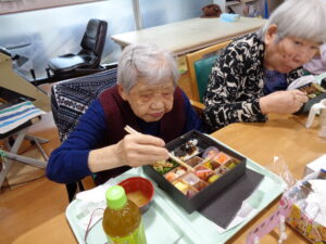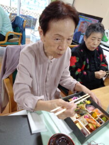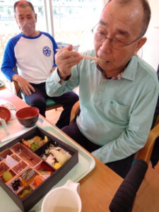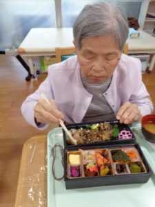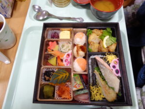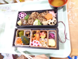 本日はゲスト様と職員はお取り寄せ弁当の日でした。全員ではなく希望者のみですが、ほとんどのゲスト様が注文されました。いつもとは違った豪華なお弁当です。食材もカラフルで食欲がでます。食欲の秋にピッタリです