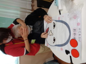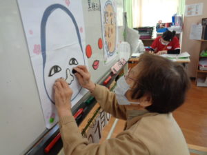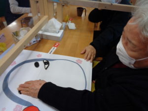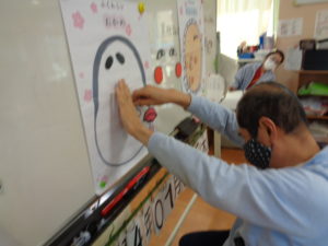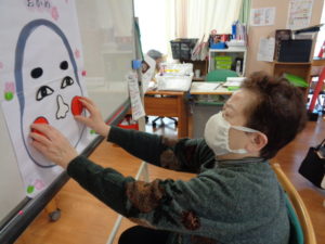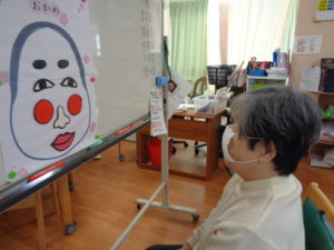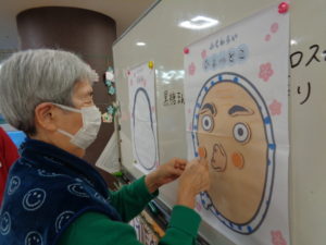 ホワイトボードを使用して、皆様に福笑いをしていただきました?